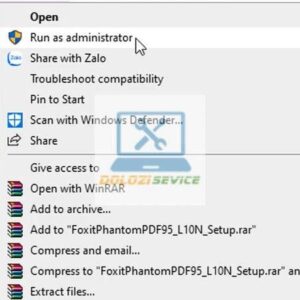 Chạy quyền Admin như hình.- Hình ảnh: Chạy file cài đặt với quyền Administrator