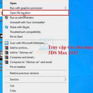 Bước 2: Ta chọn Open file location để vào thư mục cài đặt phần mềm 3DS Max 2013