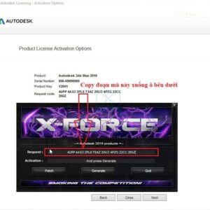 Bước 12: Copy “Request code” từ phần mềm 3DS Max 2016 và dán vào phần mềm kích hoạt bản quyền