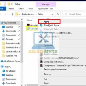 Chọn Apply như hình.- Chọn Apply để hoàn tất cài đặt Adobe Acrobat 2017