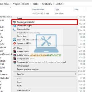 Chọn như hình.- Chọn Run as admin để kích hoạt Adobe Acrobat 2017