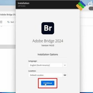Bước 2: Chọn Continue để tiếp tục cài đặt Adobe Bridge 2024.