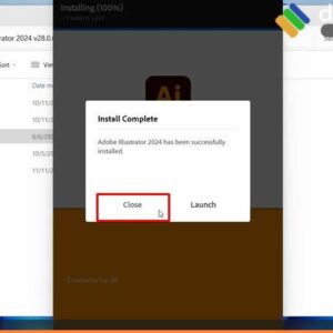 Hoàn tất cài đặt Adobe Illustrator 2024 với hướng dẫn chi tiết từ IT Nhanh - Đợi chạy được 100%. Sau đó chọn Close hoàn thành cài đặt.