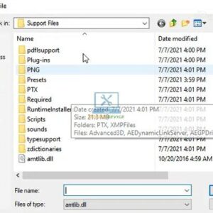 Bước 7: Duyệt đến file “amtlib.dll” trong thư mục cài đặt After Effects 2017 và nhấn “Open”