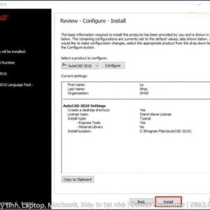Bước 5: Click vào “Install” để cài đặt Autocad 2010