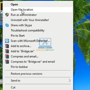 Bước 1: Click chuột phải vào biểu tượng Bridge 2017 trên màn hình và chọn “Open file location” (Mở vị trí file).