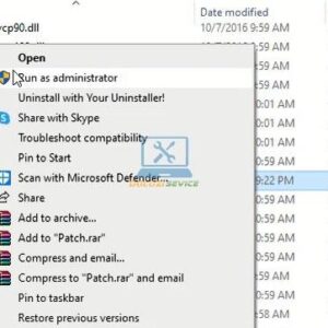 Bước 4: Chạy file Patch với quyền Administrator (chuột phải vào file Patch và chọn “Run as administrator”).