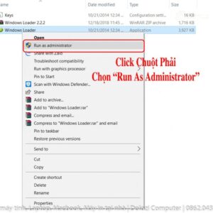 Bước 3: Chạy Windows Loader 2.2.2 với quyền Administrators