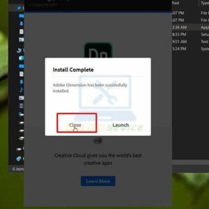 Bước 6: Chọn “Close” để hoàn thành cài đặt Adobe Dimension 2020.