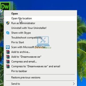 Bước 1: Click chuột phải vào biểu tượng Dreamweaver 2017 trên màn hình, sau đó chọn “Open file location”