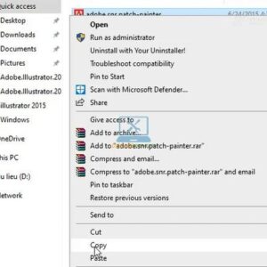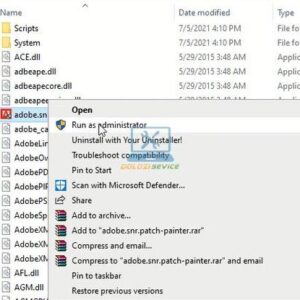 Bước 7: Click chuột phải vào file “adobe.snr.patch-painter” vừa dán và chọn “Run as administrator” để chạy công cụ kích hoạt với quyền quản trị.