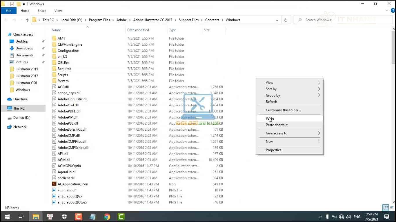 - Dán File kích hoạt vào thư mục cài đặt Illustrator 2017