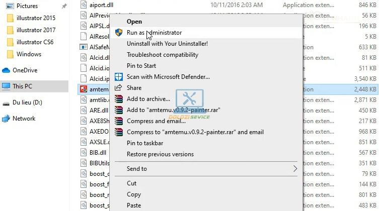 Bước 4: Paste amtemu.v0.9.2-painter vào thư mục cài đặt Illustrator 2017