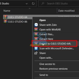 - Giải nén phần mềm OBS để chuẩn bị cho quá trình cài đặt.