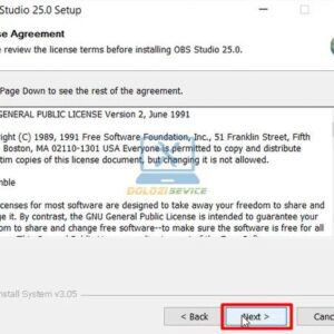 - Nhấn Next để chuyển sang bước tiếp theo trong quá trình cài đặt OBS Studio.