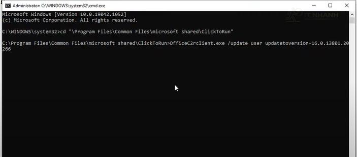 Bước 3: Tiếp tục dán dòng lệnh sau: OfficeC2rclient.exe /update user updatetoversion=16.0.13801.20266