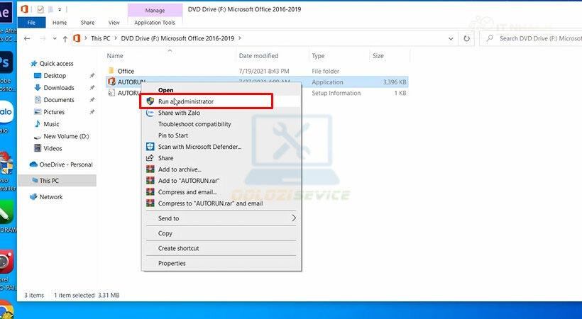 Bước 1: Giải nén file cài đặt phần mềm Office.