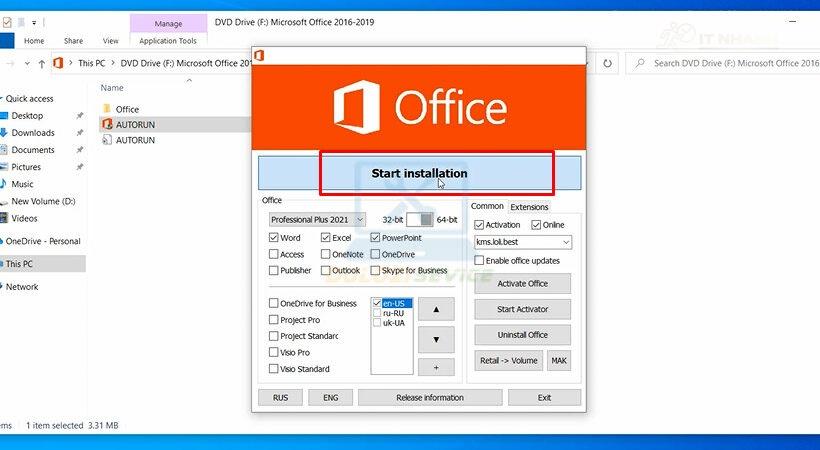 Để cài đặt thành công phần mềm Office 2021 Professional Plus (64 bit), hãy làm theo các bước hướng dẫn chi tiết dưới đây từ đội ngũ kỹ thuật của IT Nhanh:
