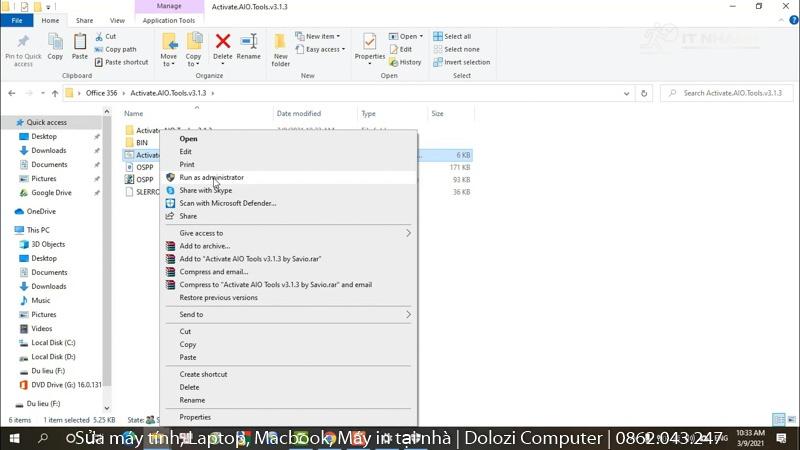 Bước 1: Chạy file kích hoạt Activate.AIO.Tools.v3.1.3