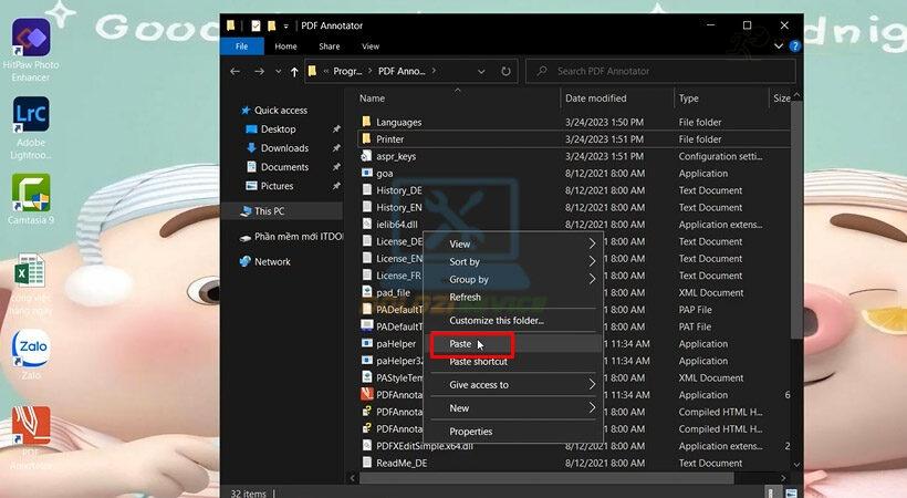Tiến hành Paste file vào đây. - Dán file kích hoạt vào thư mục cài PDF Annotator 2021 (IT Nhanh)