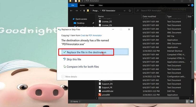 Bước 4: Chọn “Replace the file in the destination” (nếu được hỏi)