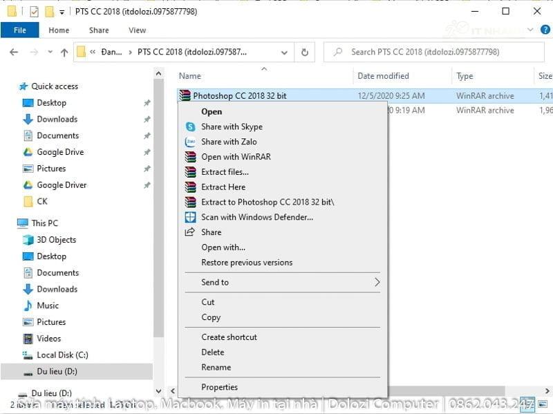 Để cài đặt ta phải giải nén phần mềm ra trước nhéGiải nén phần mềm trước khi cài đặt Photoshop 2018