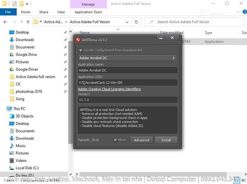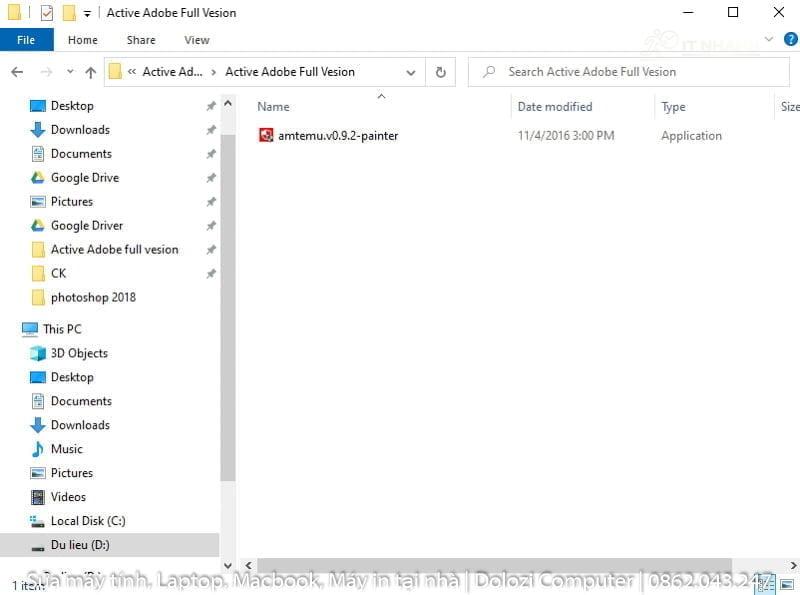 Chạy file kích hoạt Photoshop 2018Chạy file amtenu.v0.9.2-painter để kích hoạt Photoshop 2018