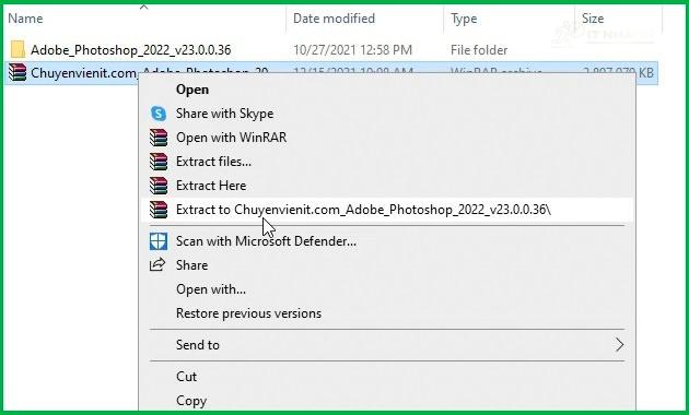 Bước 1: Tiến hành giải nén phần mềm Adobe Photoshop 2022