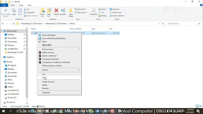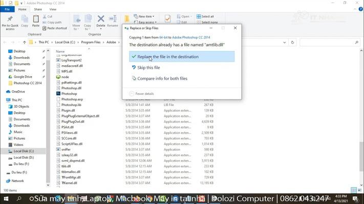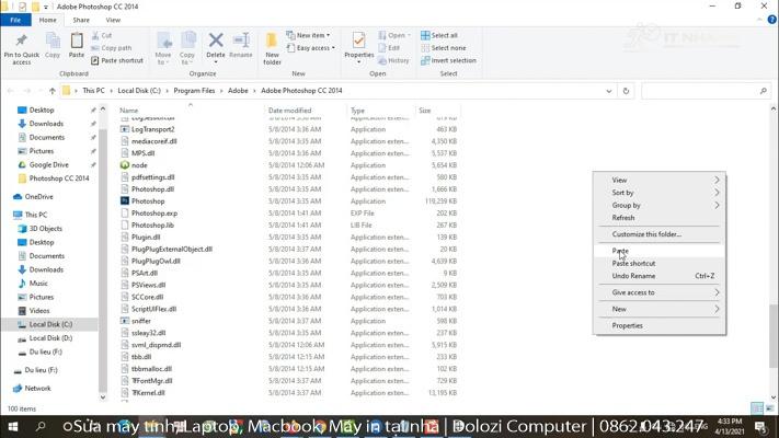 Bước 2: Dán vào thư mục cài đặt Photoshop CC 2014.