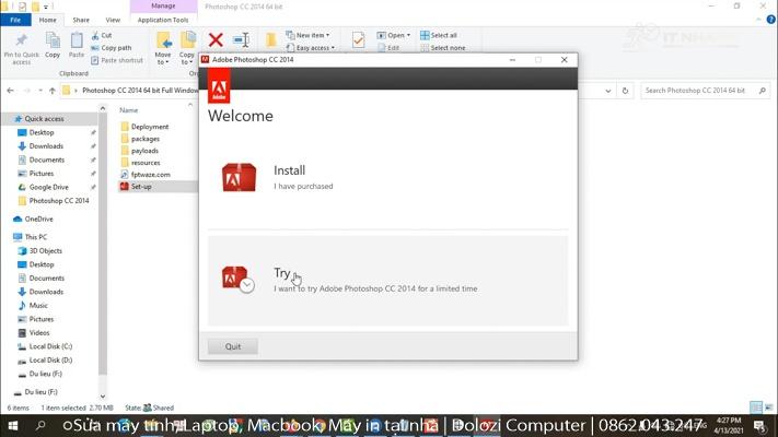 IT Nhanh sẽ đồng hành cùng bạn trong quá trình cài đặt Download Photoshop CC 2014 64 bit. Hãy làm theo hướng dẫn sau: