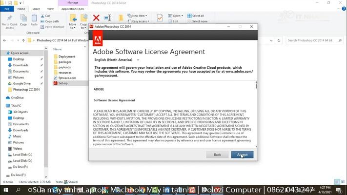 Bước 5: Chọn “Accept” để tiếp tục tải adobe photoshop 2014.