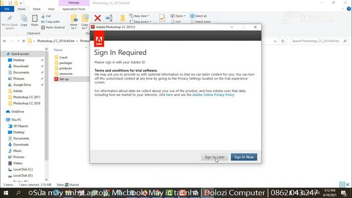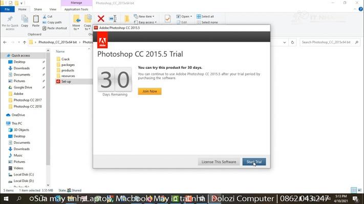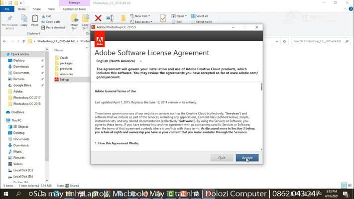 Bước 1: Khởi chạy file Setup Photoshop CC 2015.