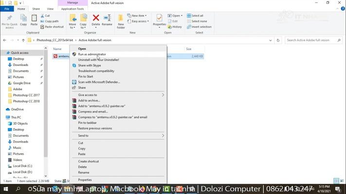 Chạy file amtemu.v0.9.2-painter bằng cách chuột phải chọn Run as Administrators