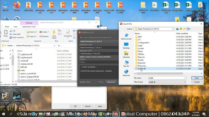 Tìm đến file “amtlib.dll” trong thư mục cài đặt Photoshop CC 2015 (ví dụ: C:Program FilesAdobeAdobe Photoshop CC 2015) và nhấn “Open”.