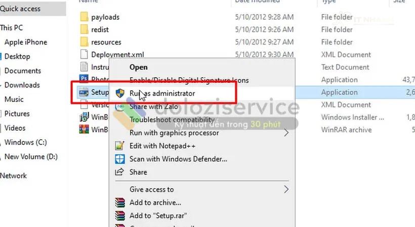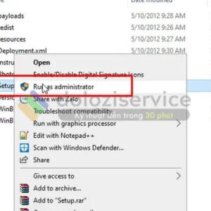 Bước 2: Khởi chạy file setup bằng quyền Admin