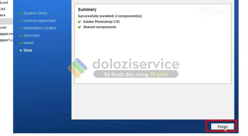 Bước 7: Chọn Finish hoàn tất cài đặt Photoshop CS3