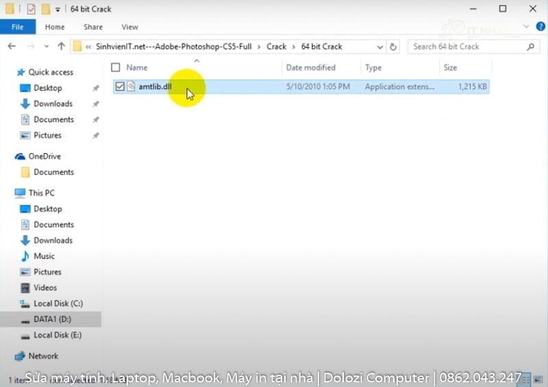 Bước 2: Copy và Paste file amtlib.dll vào thư mục cài đặt Photoshop CS5