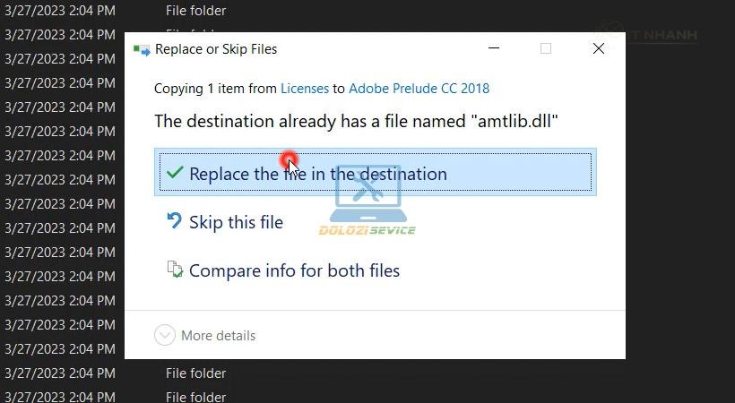 Bước 3: Chọn “Replace” để thay thế file gốc.