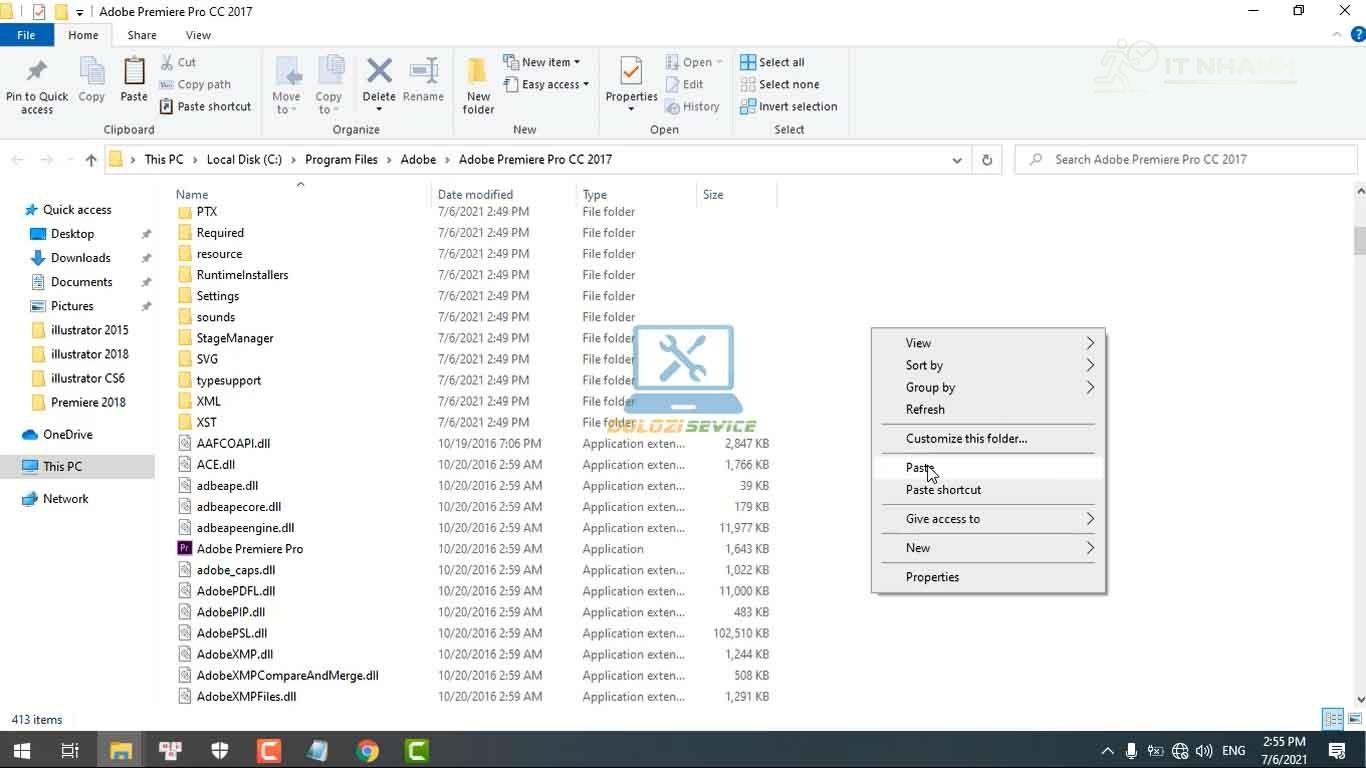 Dán vào thư mục cài đặt phần mềm Premiere 2017