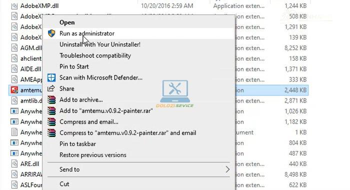 Bước 4: Chạy file “amtemu.v0.9.2-painter” với quyền Administrator (chuột phải và chọn “Run as administrator”).