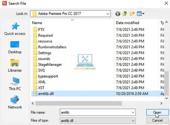 Bước 6: Tìm và chọn file “amtlib.dll” trong thư mục cài đặt, sau đó nhấn “Open”.