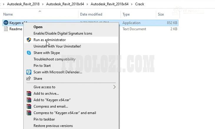 Bước 7: Chạy phần mềm kích hoạt với quyền Admin.