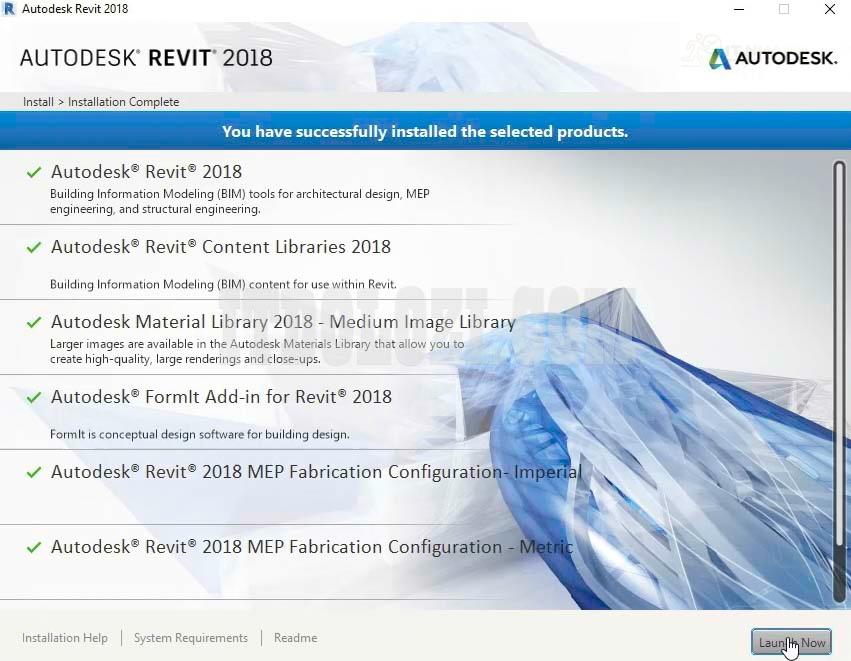 Bước 10: Thành công cài đặt autodesk revit 2018.