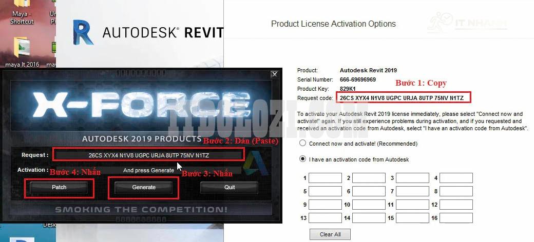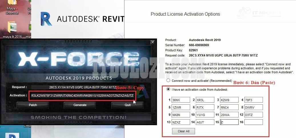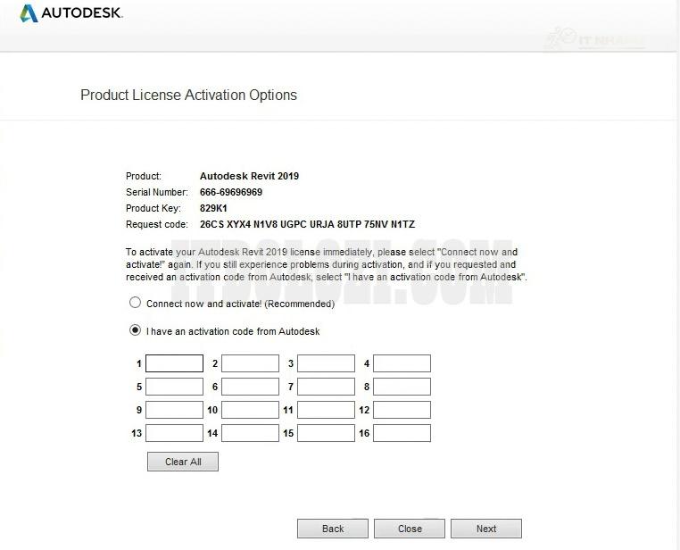 - Copy đoạn Code ở phần Activation sau đó dán vào phần mềm Autodesk Revit 2019