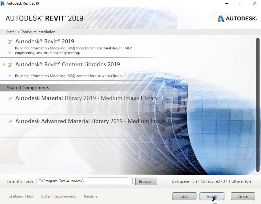 - Ta nhấn Install để bắt đầu cài đặt Autodesk Revit 2019
