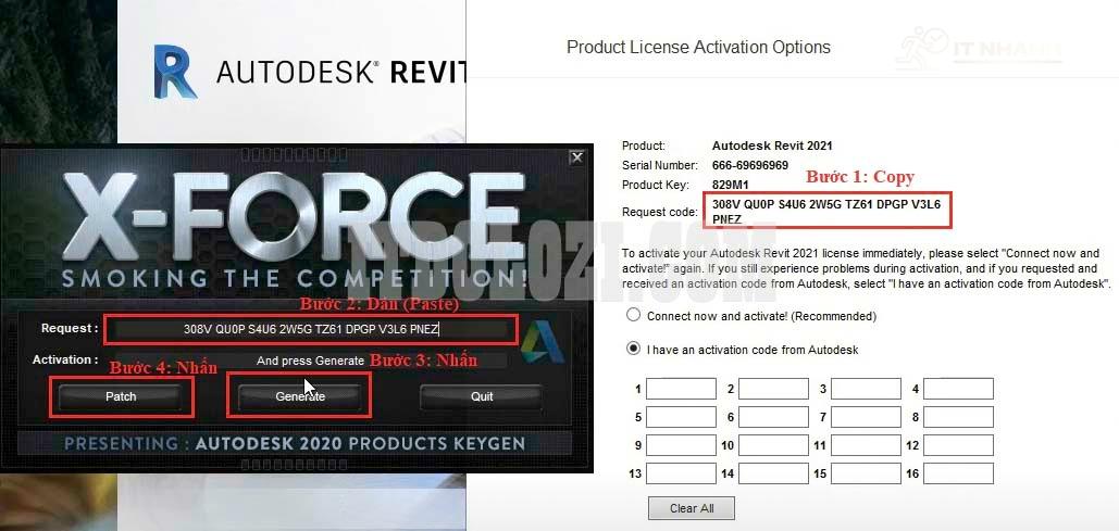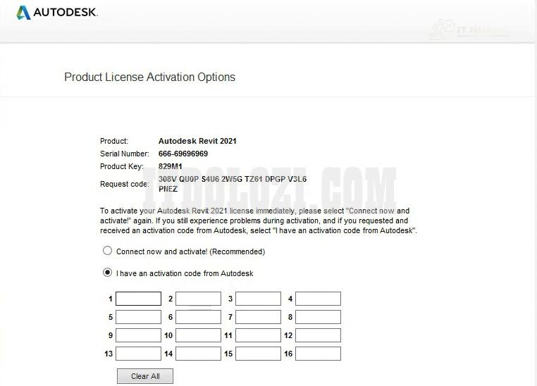 - Copy đoạn Code ở phần Activation sau đó dán vào phần mềm Autodesk Revit 2021.