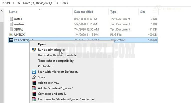 Bước 8: Chạy phần mềm kích hoạt với quyền Admin.