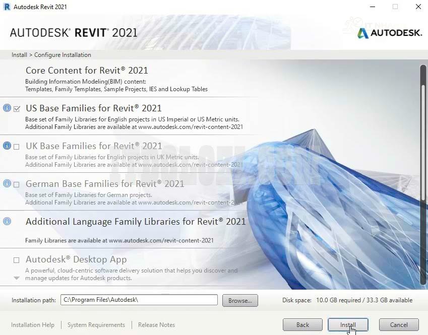 Bước 2: Nhấn Install để bắt đầu cài đặt Autodesk Revit 2021.