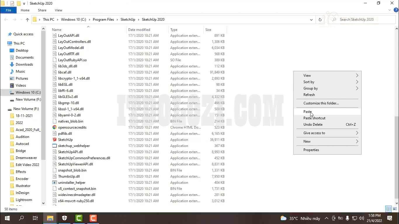 Bước 2: Dán 3 file vừa copy vào thư mục cài đặt Sketchup 2020.
