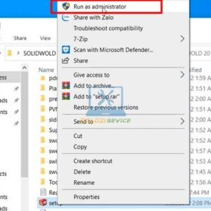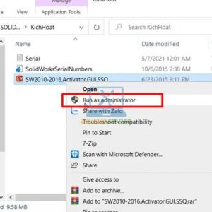 Bước 1: Chạy file kích hoạt Solidworks (thường có tên là “SolidSQUAD”).